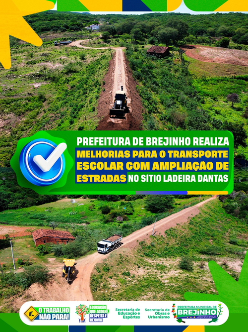 A Prefeitura de Brejinho, por meio da Secretaria de Obras e da Secretaria de Educação e Esportes, está realizando a ampliação de estradas no sítio Ladeira Dantas, na zona rural do município.
