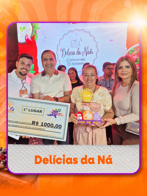 A Delícias da Ná conquistou o 1º lugar no III Festival Gastronômico Casa de Mãe, durante a IV ExpoBrejinho, mostrando todo o talento, sabor e dedicação que já fazem parte da identidade gastronômica de Brejinho.