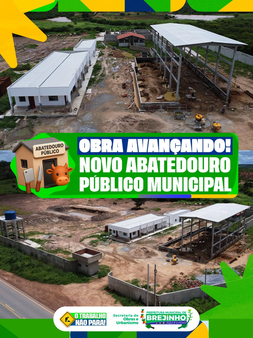 A Prefeitura de Brejinho segue dando passos importantes para o fortalecimento da infraestrutura e do desenvolvimento econômico do município, com a construção do novo Abatedouro Público Municipal, uma obra que representa mais qualidade e segurança no abate de animais. O espaço está sendo projetado dentro dos mais altos padrões de higiene e eficiência, garantindo melhores