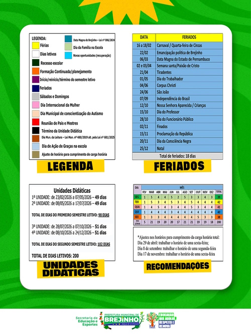 Educação e Planejamento: Prefeitura de Brejinho divulga o Calendário Escolar 2026