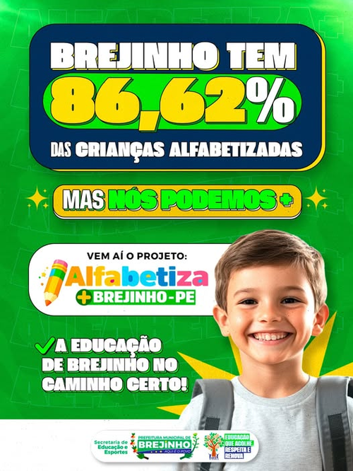 O município já alcançou a marca de 86,62% das crianças alfabetizadas, um resultado que reflete compromisso, dedicação e muito trabalho. E os avanços não param por aqui! Com a chegada do projeto Alfabetiza + Brejinho-PE, a gestão municipal continuará fortalecendo a aprendizagem e garantindo que cada criança tenha acesso a uma educação de qualidade, com