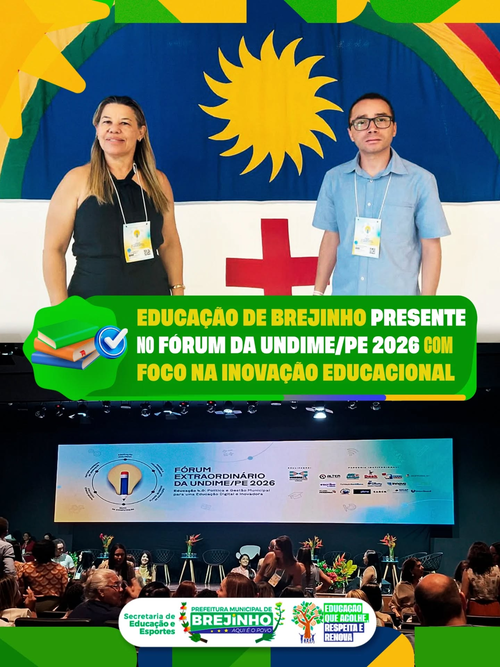 A Educação de Brejinho segue avançando e fortalecendo sua presença em espaços estratégicos de formação e diálogo educacional. Entre os dias 13 e 15 de abril, o município participou do Fórum Extraordinário da Undime/PE 2026, realizado em Recife. Com o tema “Educação 4.0: Políticas Públicas e Gestão Municipal para uma Educação Digital e Inovadora”, o